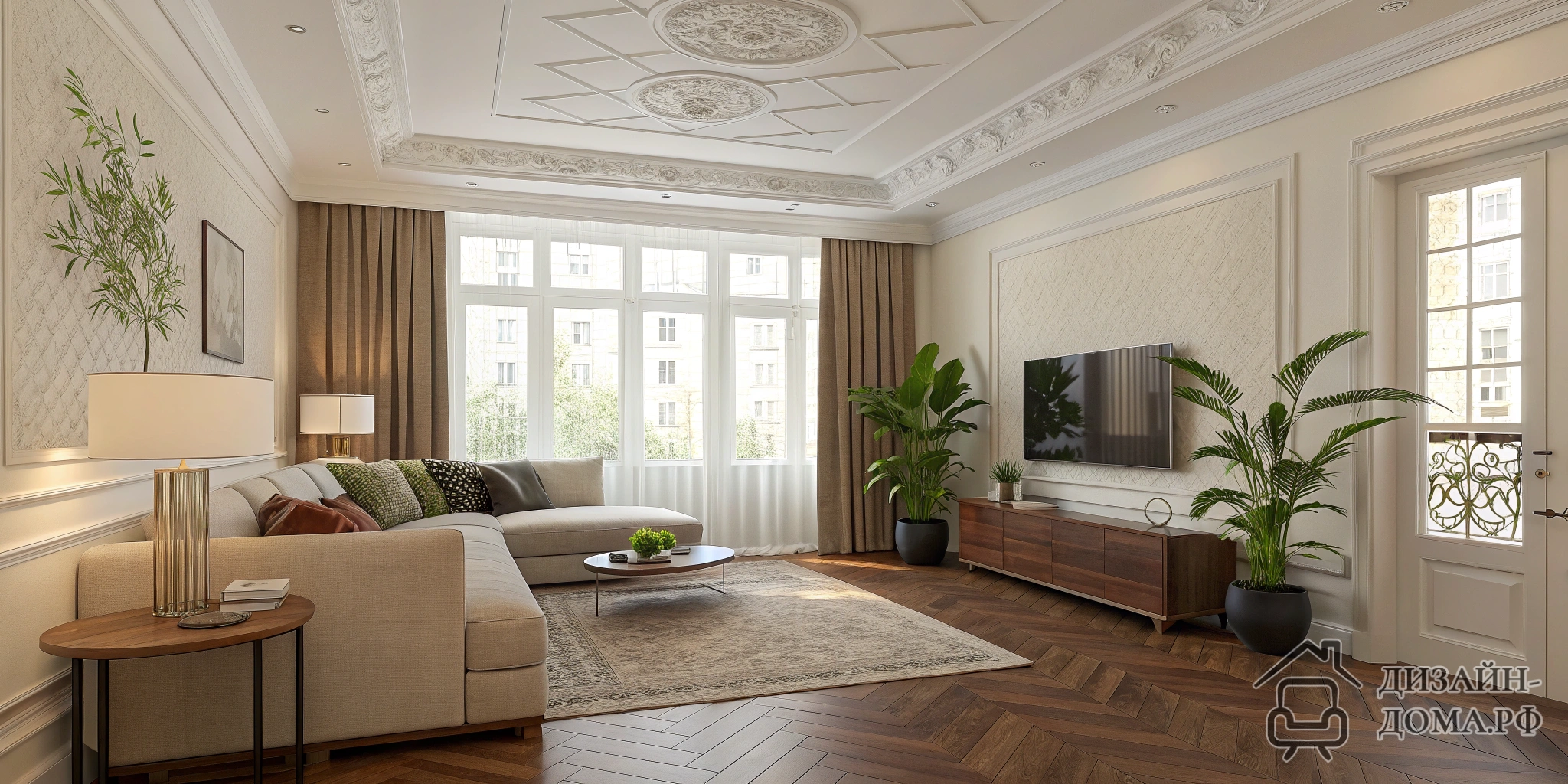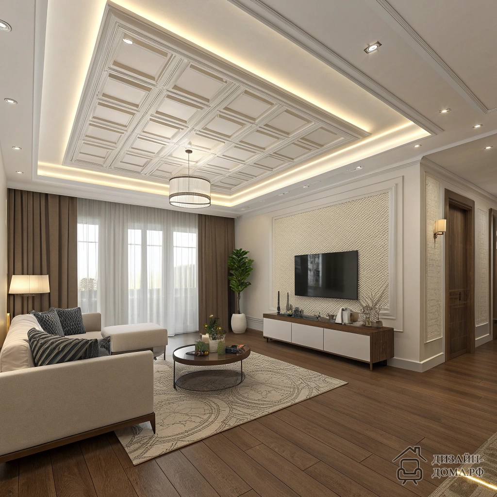 Комната, в которой что ни стена — то дверь, пол такого насыщенного шоколадного оттенка, что страшно подобрать диван, потолок — сплошная скука… Узнаёте свою квартиру? Дизайн типовой квартиры сложнее, чем кажется, но даже сложные задачи решаются! В статье разберём конкретные лайфхаки и современные идеи: как обыграть потолок, как зонировать зал 4×5, что делать с коричневым полом, где расставить мебель в комнате с тремя дверьми и как шторы буквально преображают пространство.