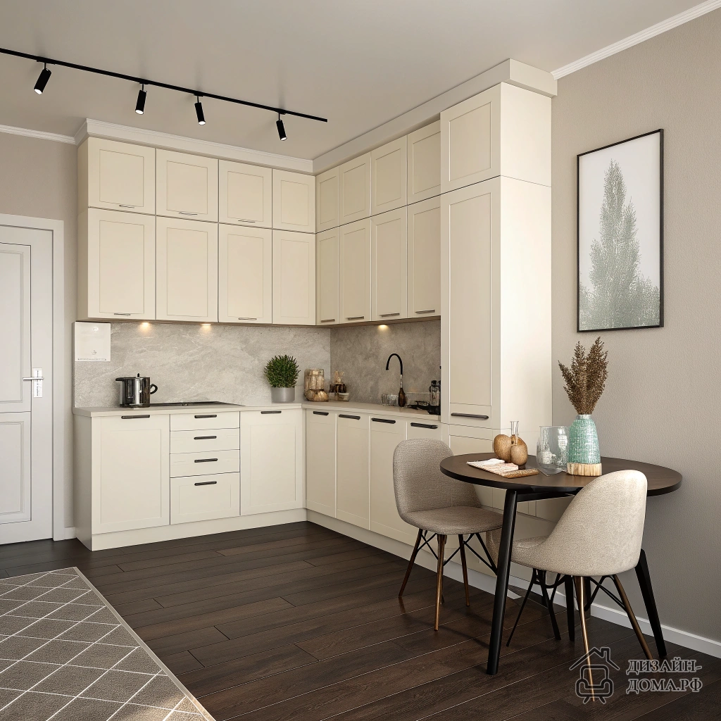 Главное правило для кухни: если отделка стен и фасады выдержаны в светлой гамме, тёмный пол становится законным центром притяжения взгляда и создаёт уверенный фундамент композиции. В представленном проекте кухни — молочные шкафы без видимой фурнитуры, гладкая столешница, а пол из насыщенного дерева. Такое решение добавляет интерьеру структуры, отлично разбавляет «сливочно-молочную» тему, а минимальный декор сохраняет ощущение современности. Уже издалека видно: тёмный пол в интерьере — ход для смелых, зато никакой навязчивой «маркости» — пыль и мелкие пятна на нём заметны меньше, чем на белом или светло-сером покрытии.