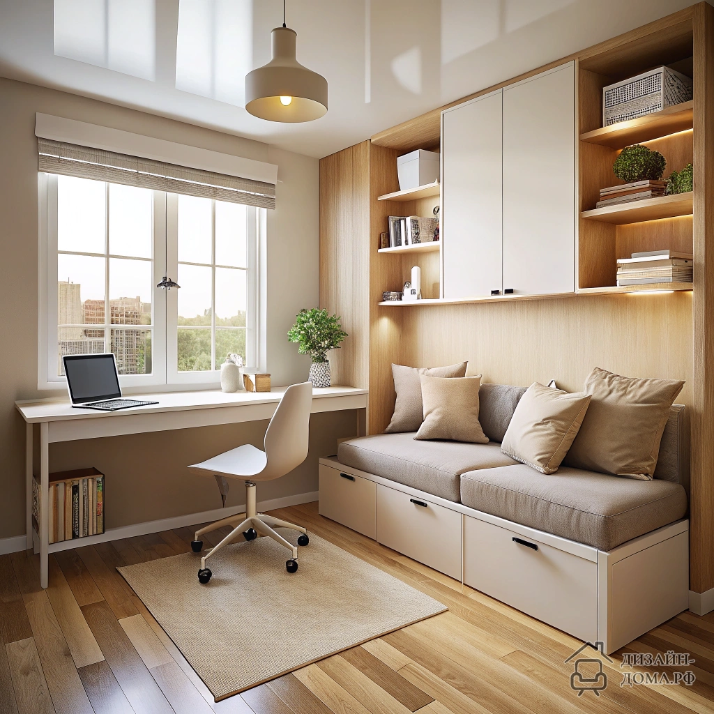 Приём особенно хорош для тех, кто ищет решения для комнаты 3 на 4 метра в спокойной молочной гамме, без потери естественного света.