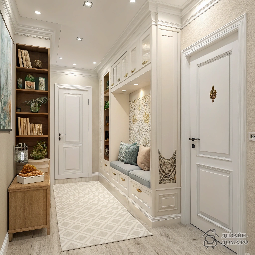 В проходных комнатах — и в классике, и в провансе — важно уметь «вести» взгляд и не дробить пространство лишним декором. Прямые маршруты и компактная мебель — ключ.